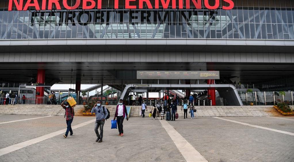 Passengers walk out of Nairobi Terminus of the Mombasa-Nairobi Standard Gauge Railway (SGR) in Nairobi, Kenya on July 9, 2021. The Chinese-built Standard Gauge Railway (SGR) linking Kenya's port city Mombasa to the capital Nairobi is celebrating 1,500 days of safe operation as it seeks to boost the safety of passengers and cargo along the 480 km corridor. (Xinhua/Li Yan)